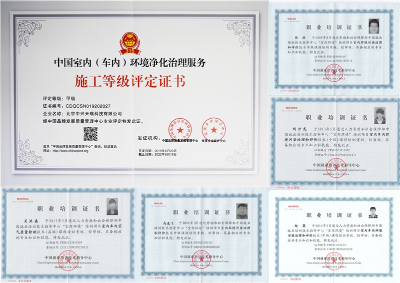 我們由經過專業培訓并取得資格證書的技術工程師擔任治理施工負責人,面向客戶對效果負責。我公司總經理從2008年開始,擔任人力資源和社會保障部“就業培訓技術指導中心”頒發證書的“全國室內環境檢測治理崗位和職業資格培訓班”專任講師,為行業培養了一大批專業技術人才,得到央視新聞頻道、北京衛視、山東衛視、青海衛視、齊魯網等媒體新聞報道。