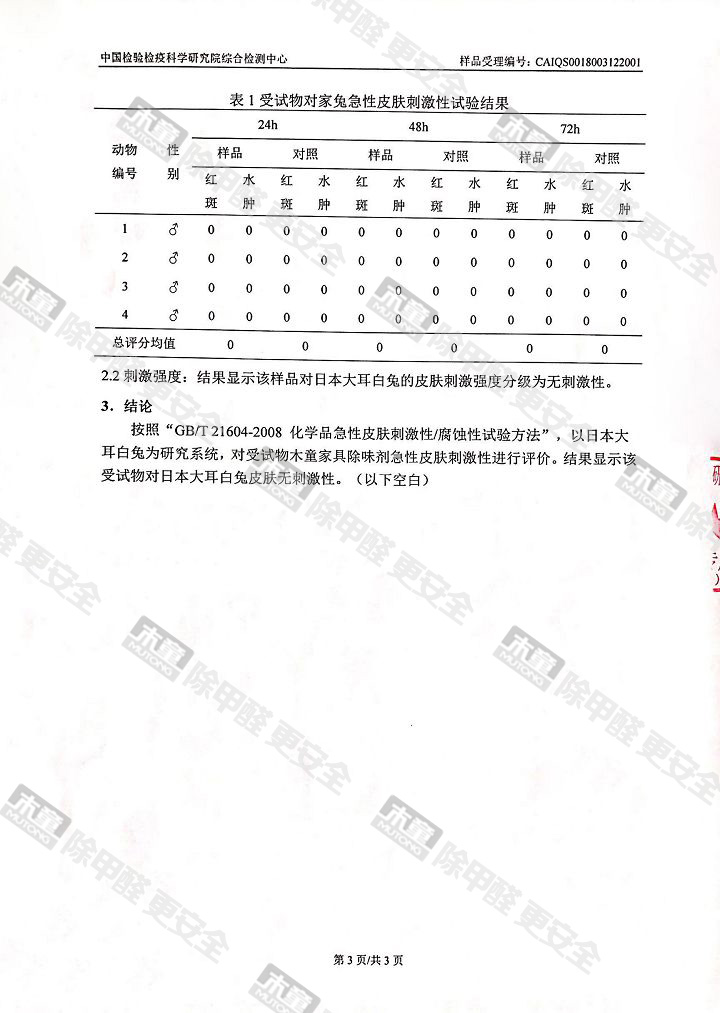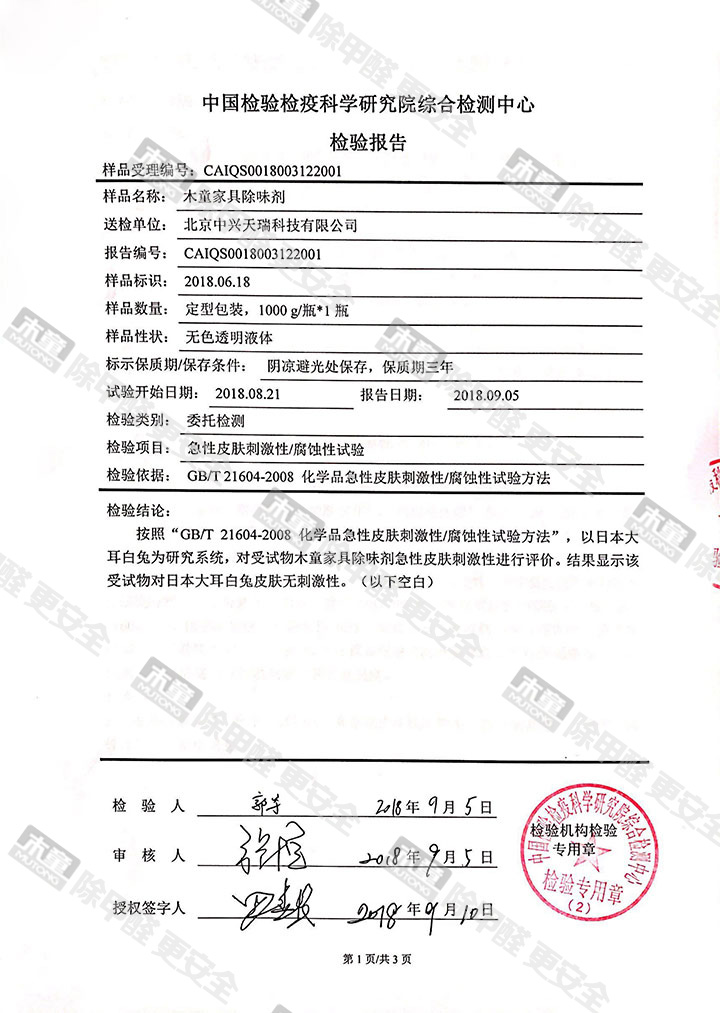 木童除甲醛地板蠟檢測報告