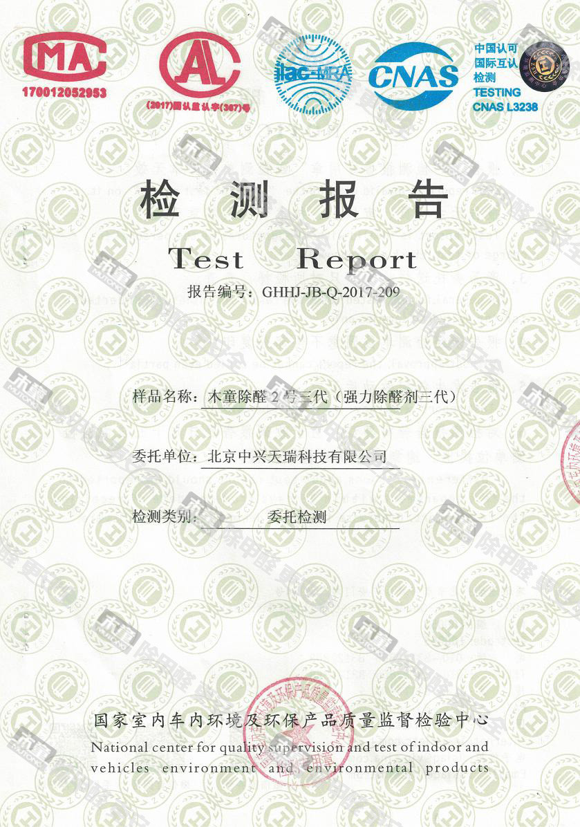 木童除醛2號三代效果檢驗報告2017